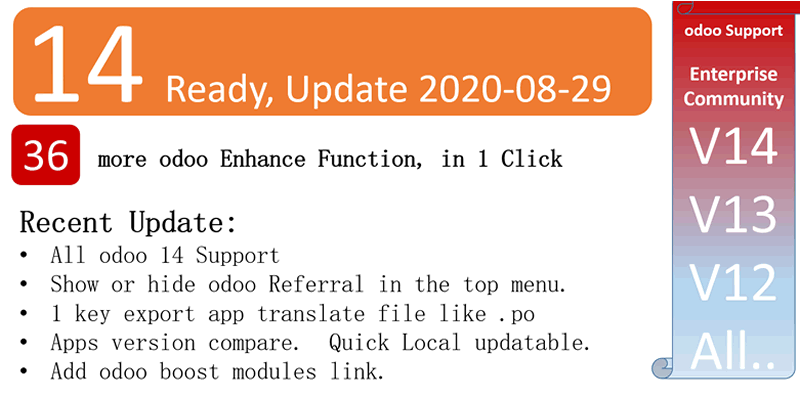 Support Odoo 14,13, 12, 11, 10, 9. Including community and enterprise version.
