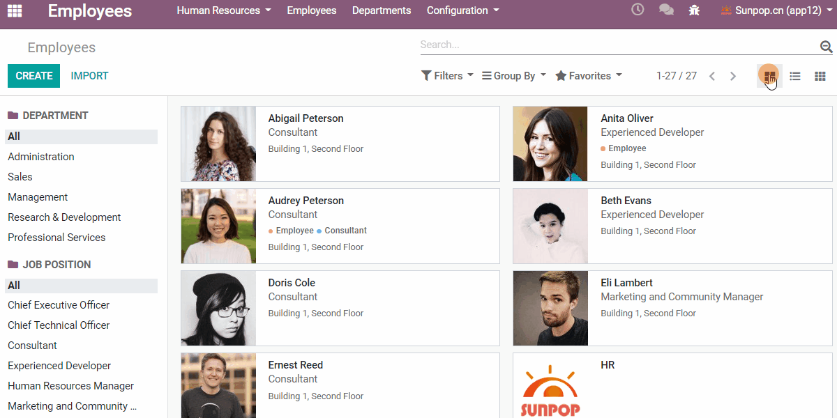 Easy to navigator and browse any data. Support Search more, list, kanban, pivot, graph view.