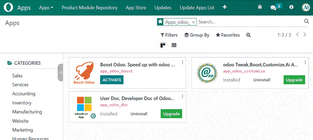 • 20. 在应用面板显示快速升级按键,点击时不会导航至 odoo.com
