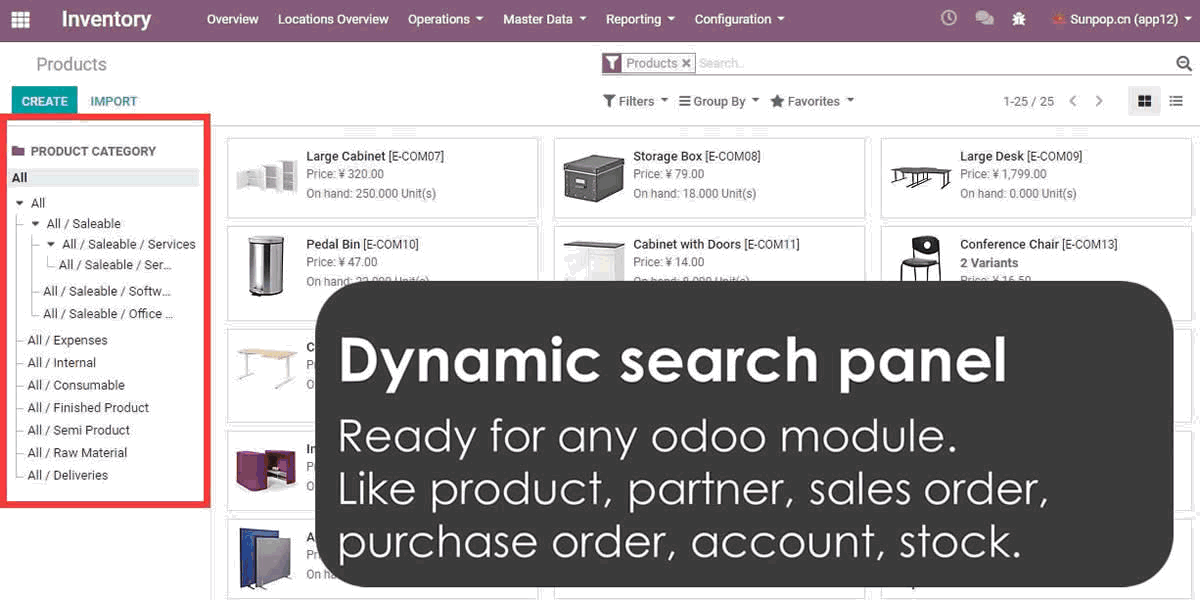 Easy to navigator and browse any data. Support Search more, list, kanban, pivot, graph view.