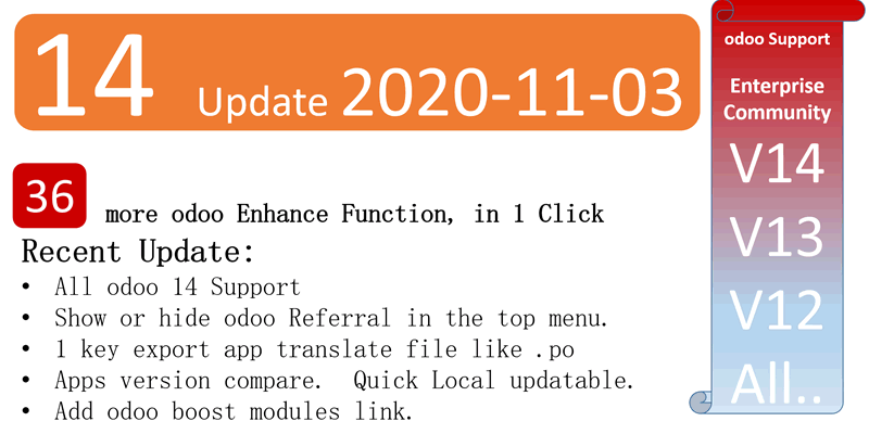 Support Odoo 14,13, 12, 11, 10, 9. Including community and enterprise version.