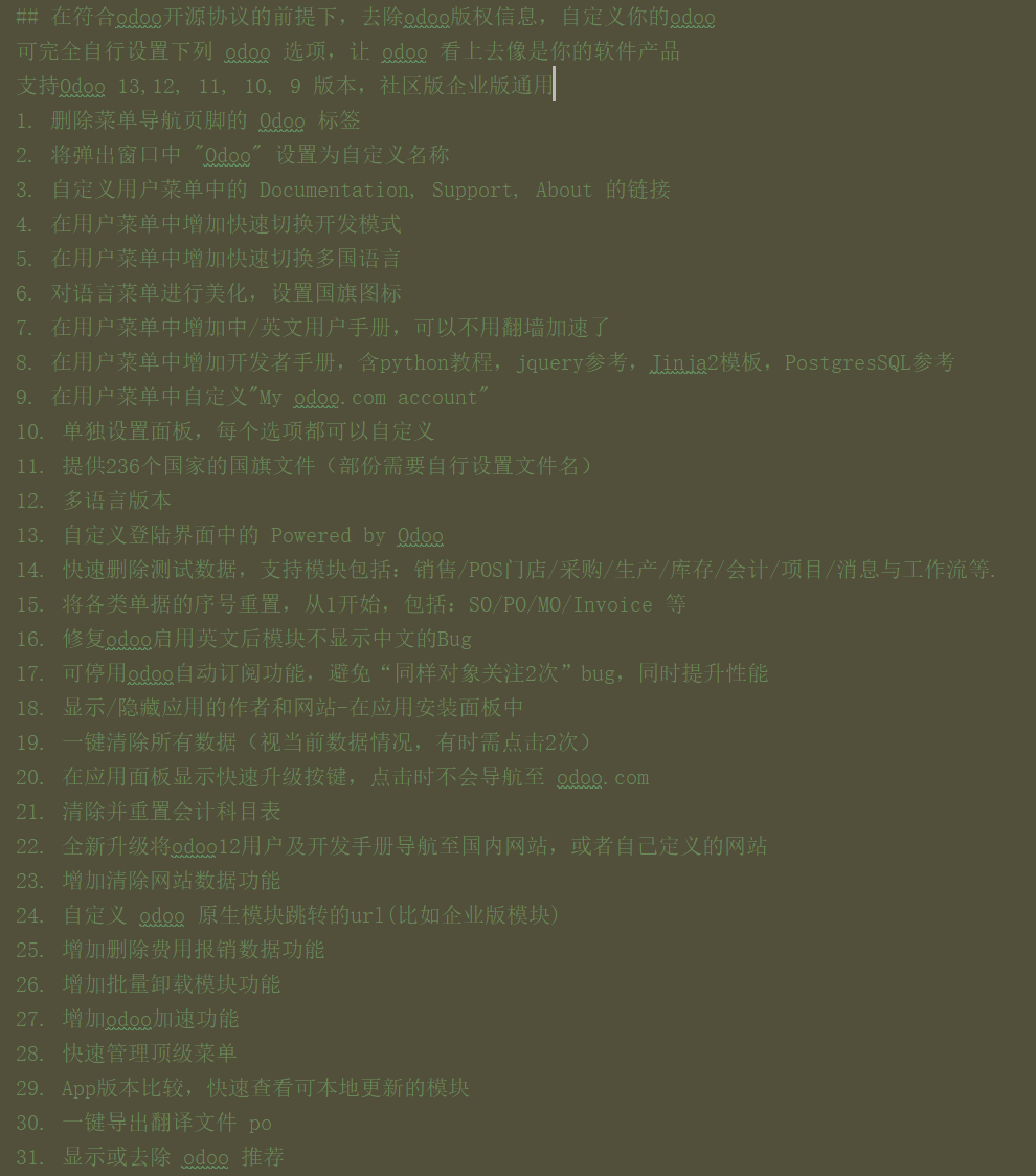 Support Odoo 13, 12, 11, 10, 9. Including community and enterprise version.