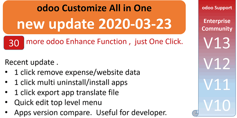 Support Odoo 13, 12, 11, 10, 9. Including community and enterprise version.